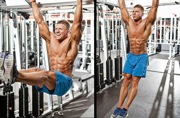 The hanging leg raise features as a top exercise for both the rectus and the obliques and it should be considered a go-to exercise for ab development. Athletes who are unable to complete a leg raise can strengthen themselves up by doing hanging knee raises.
